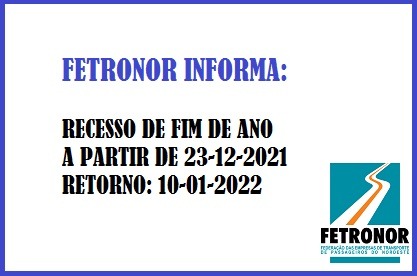 A Fetronor informa que entrará em recesso a partir do dia 23 de dezembro de 2021, retomando as atividades no dia 10 de j...